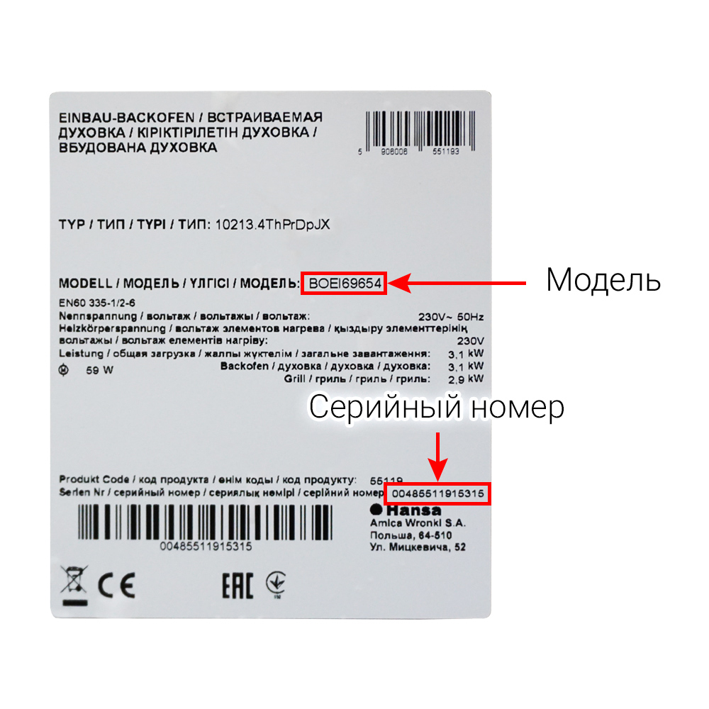 Шильд (заводская наклейка) — это наклейка, содержащая важную техническую информацию о приборе, на котором находится. Она содержит такие основные данные, как производитель, модель, серийный и заводской (продуктовый) номера. После того как вы сделаете заказ в интернет-магазине, не нужно сразу его оплачивать. Сначала мы проверим по технической документации, соответствует ли заказанная деталь вашему прибору. Для этого необходимо прислать нам фотографию шильда. Сделать это можно во время оформления заказа, например, воспользовавшись онлайн-консультантом на нашем сайте. Также вы можете отправить фотографию шильда нам в Telegram, WhatsApp, MAX или по электронной почте, ответив на наше письмо. Но в этом случае время обработки заказа может увеличиться.